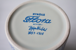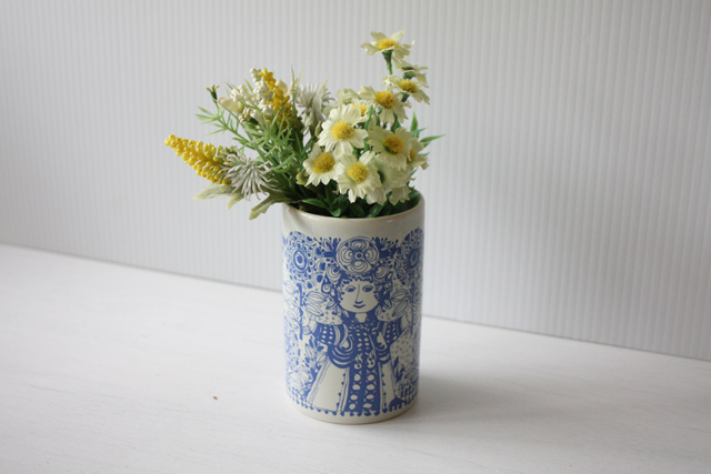 デンマークで人気のアーティスト/Bjorn Wiinblad(ヴョルン・ウィンブラッド)のフラワーベースです。デザインのフローラというタイトルと通り、美しいお花を手にした女性が佇んでいます。