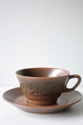 デンマーク、Knabstrup社のカップ&ソーサーです。こちらはNoeddeboシリーズという、大変美しいフォルムのデザインで原産国のデンマークでも人気のあるシリーズになります。knabstrup社は1907-1988年までスタイリッシュな作品を生産していた窯で閉窯して30年が経ちますが、今なお、現在のインテリアにもしっくりとくるスカンジナビアンモダンスタイルがコレクターを魅了しています。通常の温度よりも高温の温度で焼き上げているので、大変固く強いだけでなく、焼き上がりの色具合が個性的になっているのも特徴です。北欧モダンがお好きな方に是非お勧めしたい作品です。
