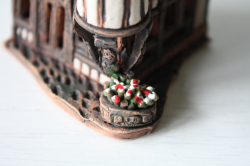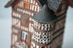 リトアニアで作られた陶器でできた家をモチーフにしたアロマキャンドルハウスです。リトアニアだけでなく、ヨーロッパ諸国の実在する建物の写真を見ながら職人が1つ1つ製作しています。手作りの1品もので、繊細な彫り・塗装も細部にまで丁寧に作られリトアニアの職人のきめ細やかな仕事ぶりと、やさしさが伝わってきます。オブジェとしてだけでなくでなく、中にお香やキャンドルを入れて楽しめます!ティーキャンドルを灯すと窓などから明かりが漏れてきれいですし、屋根にアロマオイルなどを垂らしていただくと中で温められてほのかに香ります。サービスでティーキャンドルを2個プレゼントします。