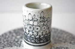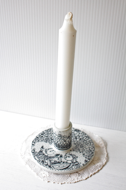 デンマークで人気のアーティスト/Bjorn Wiinblad(ヴョルン・ウィンブラッド)のキャンドルホルダーです。丸くて安定感のあるフォルムでしっかりとしたキャンドルを立てることが出来ます。二モール社の作品は素朴で温かいタッチのデザインが多く、こちらのキャンドルもほっこりとした印象で、大変可愛らしいです。コレクションにいかがでしょうか。