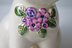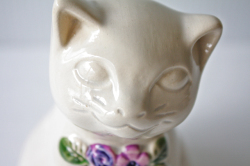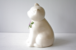 スウェーデン/Rosa Ljungデザインのねこのオブジェです。こちらは真っ白いぷっくりとしたネコちゃんがモチーフでキョトンとした表情で大変愛らしい表情をしています。Rosa Ljungといえばオブジェに必ずお花がついていますが、こちらも胸にパープルのお花がデザインされており華やかです。