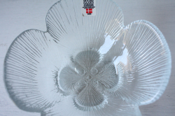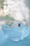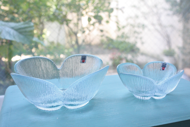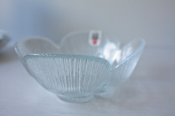 デンマークの王室御用達ブランド、Holmegaardのガラスボウルです。こちらはクローバーのようなお花のモチーフになっていて、花びらが1枚1枚立体的に表現されています。どっしりと重量感もあり、華やかです。