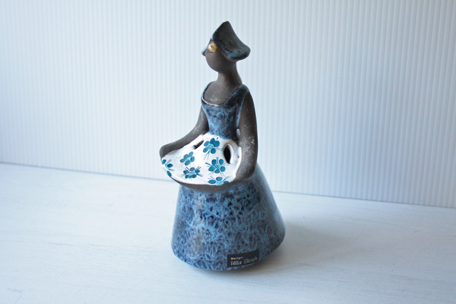 スウェーデン、jie gantofta社製の陶器の花瓶です。女の子が両手でエプロンを広げているポーズで穴の開いている部分にお花を活けて頂くと華やかなオブジェになります。