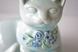スウェーデン/Rosa Ljungデザインのネコのオブジェです。今回入荷分はアイスブルーのネコちゃんでとてもクールな表情です。Rosa Ljungといえばオブジェに必ずお花がついていますが、こちらも胸元にパープルのお花がデザインされており華やかです。ネコ好きの方はお見逃しなく!