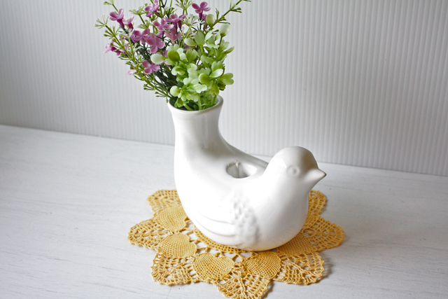 スウェーデンで見つけた花瓶&キャンドルホルダーです。可愛い白い小鳥型のフォルムで背中にキャンドル、尾っぽにお花を生けることができます。