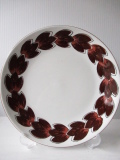 1960年代にFiggioと合併したノルウェーのStavangerflint(スタヴァンゲルフフリント)社のケーキプレートです。こちらは丸いフォルムに可愛らしいブラウンカラーの葉っぱモチーフがぐるりとデザインされています。濃淡のあるタッチで味わいある雰囲気です。