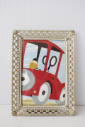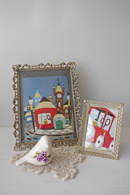 デンマークのアンティークショップで見つけたフォトフレームです。中にはアンティークの刺繍やレース、また写真や古い絵本の切抜きを入れても素敵なインテリアとしてお使いいただけるでしょう。掲載写真には古い絵本の切り抜きが入っています。