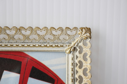 デンマークのアンティークショップで見つけたフォトフレームです。中にはアンティークの刺繍やレース、また写真や古い絵本の切抜きを入れても素敵なインテリアとしてお使いいただけるでしょう。掲載写真には古い絵本の切り抜きが入っています。