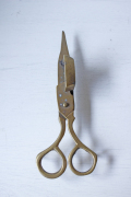 デンマークで見つけた真鍮のろうそくの芯取りです。ろうそくを吹き消すだけでは、芯が残り、黒いモクモクとした煙が出ることもあり、こちらの芯取りで、焦げたススをすくうように当てると、芯取りの受け皿にススがパラパラっと取り除くことができ、大変実用的です。オブジェとして飾って頂いても、落ち着いたアンティークのインテリアを演出できそうです。
