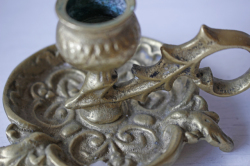 デンマークで見つけた真鍮のキャンドルホルダーです。こちらはクラシカルで繊細なデザインになっており、レースなどと一緒に飾っていただくと一層素敵です。オブジェとして飾って頂くと、落ち着いたアンティークのインテリアを演出できそうです。