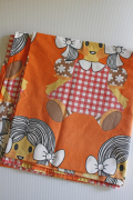 ヴィンテージのプリントファブリックです。こちらはオレンジカラーに可愛らしい女の子が全面にデザインされたレトロ感満載のファブリックです。リメイクして楽しんで頂けそうです。