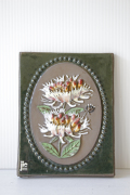 スウェーデンのjie gantofta社製の陶器の壁掛けです。Jieの陶板は可憐なお花がデザインされているものが多く、可愛らしいものからシックなものまでお気に入りを見つけてください。こちらは大ぶりのフラワーが実写的にデザインされた個性的な印象です。複数枚、組み合わせて飾るのも素敵です。裏面には、壁に掛ける穴が開いています。