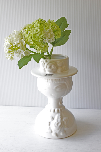 スウェーデンのHJO社製のヴィンテージオブジェベースです。こちらは白いシンプルなカラーで、可愛らしい帽子を被った女性がモチーフになっています。頭の部分が花瓶になっており、お花を飾って頂くとユニークで華やかなオブジェとして楽しんで頂けそうです。個性的な作品をお探しの方におすすめのデザインです。