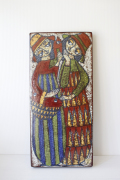デンマークのMichael Andersen & Son社の陶板の壁掛けです。デザインは数々の女性らしい柔らかな作品を生み出したMarianne starckになります。こちらの作品は、2人の少女とサカナがモチーフで釉薬を貫入に染み込ませ個性的な仕上がりになっています。40cm弱の長さで大きめの陶板ですので、とても存在感があります。こちらはドイツ/ブリュッセルの世界万博で金賞を受賞したPersia Techniqueと呼ばれる貫入による独特の技法が使われています。市場でもあまり見かけない珍しい作品です!