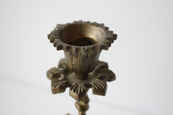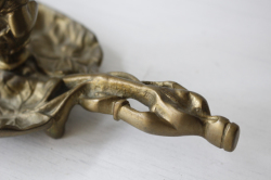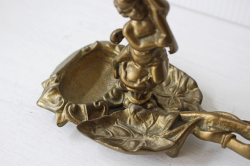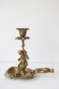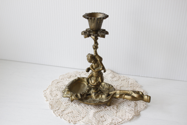 デンマークで見つけた真鍮のキャンドルホルダーです。こちらは持ち手付きのフォルムにかわいらしい天使がデザインされた大変凝ったキャンドルホルダーです。受け皿はお花がモチーフになっており大変凝ったつくりです。オブジェとして飾って頂くと、落ち着いたアンティークのインテリアを演出できそうです。