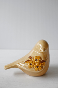 スウェーデン/Rosa Ljungデザインのオブジェです。こちらは小鳥がモチーフになっていて中央には、Rosa Ljungの得意なお花がデザインされており可愛らしい雰囲気です。こちらは珍しいオレンジベージュの優しい色合いの小鳥です。
