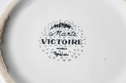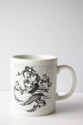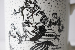 デンマークの人気デザイナーBjorn Wiinblad(ヴョルン・ウィンブラッド)のマンスリーマグカップです。こちらのシリーズは1月から12月までの1枚1枚に男女の出会い、結婚、妊娠、出産までを四季を交えながら描いています。3月のテーマは、「VICTORE」(勝利)男性が女性の愛を勝ち取り、結婚する場面です。女性は、うっとりした目で男性と見つめあい背景には天使がバラの花を持ってお祝いしています。とても幸せな空気を感じることができます。