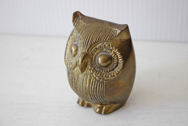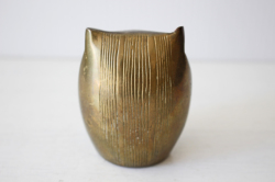 真鍮製のフクロウのオブジェです。丸いフォルムの目のクリクリしたフクロウモチーフは愛らしく、また真鍮製ですので、どっしりとしています。フクロウは幸せのモチーフとして北欧でも人気のモチーフです。お気に入りの空間に飾って楽しんで下さいね~。