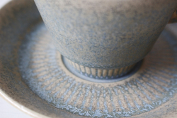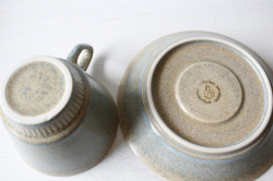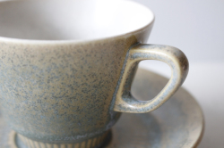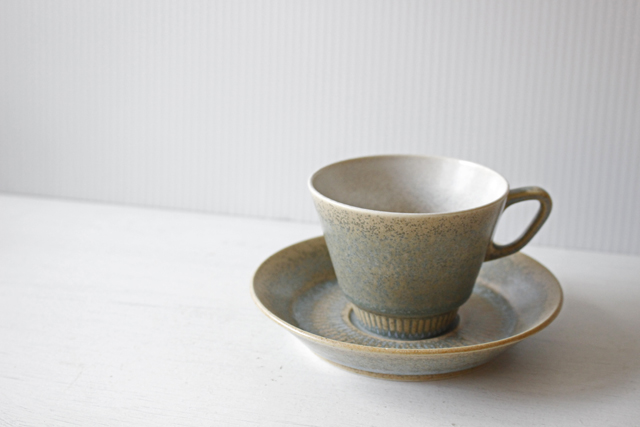 デンマーク、Knabstrup社のカップ&ソーサーです。こちらはNoeddeboシリーズという、大変美しいフォルムのデザインで原産国のデンマークでも人気のあるシリーズになります。knabstrup社は1907-1988年までスタイリッシュな作品を生産していた窯で閉窯して30年が経ちますが、今なお、現在のインテリアにもしっくりとくるスカンジナビアンモダンスタイルがコレクターを魅了しています。通常の温度よりも高温の温度で焼き上げているので、大変固く強いだけでなく、焼き上がりの色具合が個性的になっているのも特徴です。北欧モダンがお好きな方に是非お勧めしたい作品です。