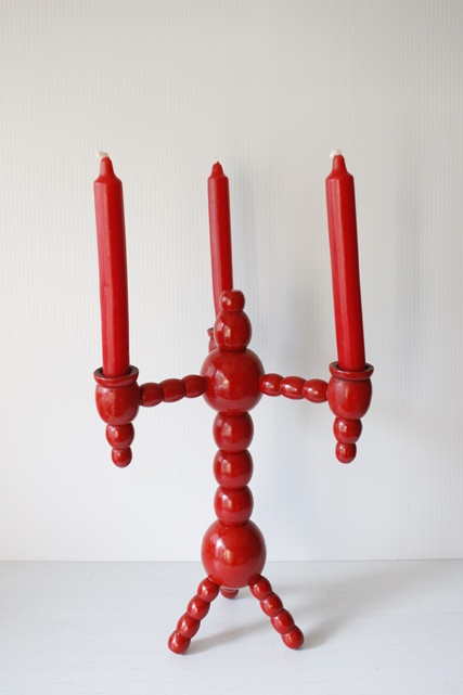 スウェーデン製のキャンドルスタンドです。こちらは、木製でできています。ぽこぽこと丸が連なったような可愛らしいデザインでクリスマスの時期など、食卓の中心に飾って華やかなに演出してください。キャンドルが3本立てられます。ハンドメイドの温かみがクリスマスにぴったりのデザインです。こちらは特大サイズで迫力があります。