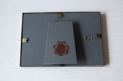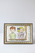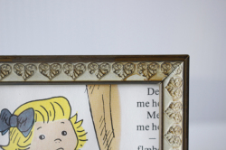 デンマークのアンティークショップで見つけたフォトフレームです。中にはアンティークの刺繍やレース、また写真や古い絵本の切抜きを入れても素敵なインテリアとしてお使いいただけるでしょう。掲載写真には古い絵本の切り抜きが入っています。