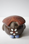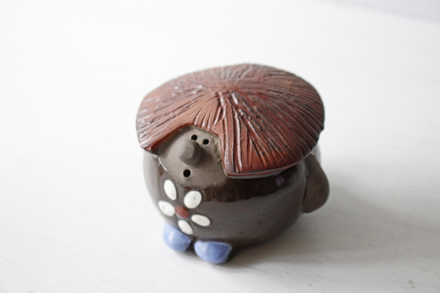 スウェーデン/Jie社のヴィンテージオブジェです。こちらはぷっくりとしたおなか、マッシュルームヘアのトロール(妖精)の陶器のオブジェです。シッポが腰に巻きついていて、愛嬌のある表情をしています。ホワンとした表情ののんびりさんキャラクターで愛嬌がありますよ。