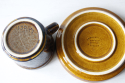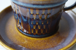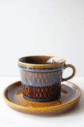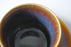 デンマークの小さな島(ボーホルム島)に1835年から1996年まで存在した陶器メーカーSoholm(スーホルム)のブラウンのティーカップ&ソーサーです。ぽってりとした厚みのあるフォルム、ライトブラウンとペールブルーが混じりあい幻想的な色合いがとても美しいです。こちらは珍しいティ-カップで、たっぷりコーヒーや紅茶が楽しめます。