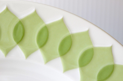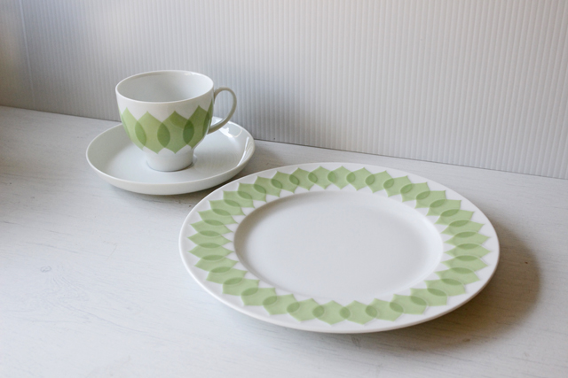 ドイツの一流ブランド、ローゼンタールのスタジオラインにて製造されたデンマークの人気デザイナーBjorn Wiinblad(ヴョルン・ウィンブラッド)のデザートプレートです。ロータスという蓮の花びらがモチーフとなったシリーズで、花びらを重ねて重なった部分の色が濃くなっていたり花びら自体が少し立体的にフォルムデザインされているところなどシンプルながら丁寧なつくりとなっています。爽やかなミントグリーンのお色は春の食卓を華やかに演出してくれるでしょう。今回入荷分は、未使用品でコンディションもよくおススメです。