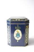 デンマークの高級スーパーIrma(イアマ)のヴィンテージのクッキー缶です。イメージキャラクターのイアマちゃんがうつむいてたたずんでいます。ブルーのワンピースに、頭には大きなリボン、クラシックで上品ですね。イアマの缶はデンマークでもコレクターが多いのです。