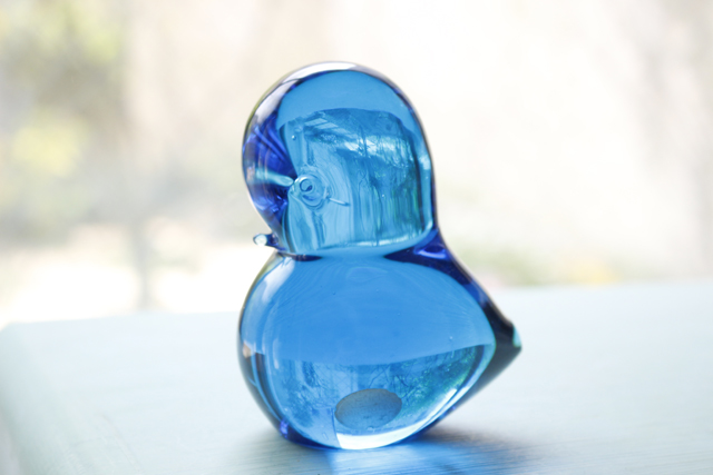 スウェーデン製のガラスのオブジェです。可愛らしい小鳥がモチーフになっています。つるんとした表面の滑らかさと、セルリアンブルーの美しいお色、つぶらな瞳でとても愛らしく仕上がっています。