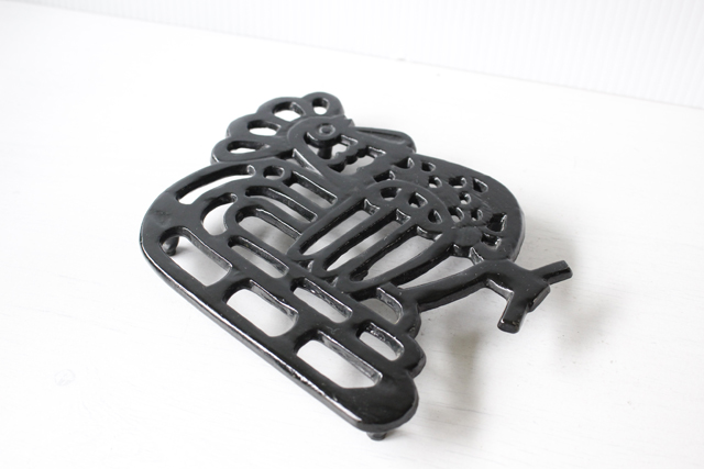 デンマークで見つけたヴィンテージ鍋敷きです。アイアン製でとてもしっかりとしたつくりです。とさかと尾っぽが立派な雄鶏モチーフで、ひょこっとした表情が愛らしく、テーブルが和やかに彩られそうです。