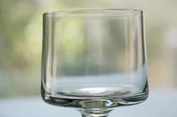 デンマーク、Holmegaard(ホルムガード)のガラスのグラスです。こちらはStubというシリーズで1950年代後半から1990年までの長きに渡り作られていたベストセラーです。美しいフォルムにスタッキングできるところから、収納もバランスよく出来るため、とても実用的です。こちらは小さなスナップス用のグラスになりますが、四角の脚付きフォルムですので、日本酒や、豆皿のように梅干しなどを一つ入れて食卓に出してもステキです。時を経て2019年には一部のサイズが復刻されていますが、こちらの小さいサイズはヴィンテージのみになります。当時の作品は一つ一つのガラスの厚みなども違い、味わい深いのもおススメです。