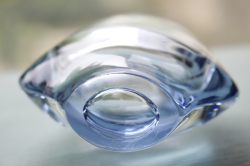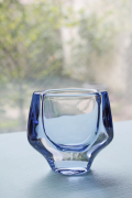 デンマーク、Holmegaard(ホルムゴー)のガラスの花瓶です。美しいブルーのクリアカラーのベースでフォルムは丸みを帯びており、オブジェとしても楽しめそうです。厚みのあるしっかりとした造りで現行品にない、味わいがあります。