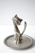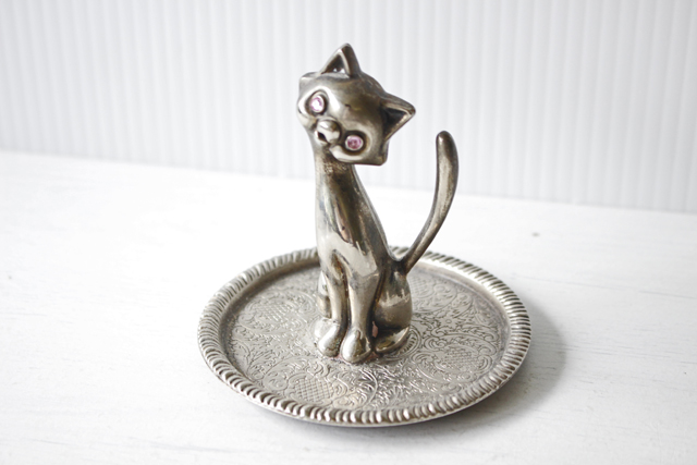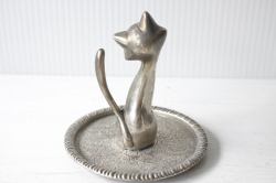 デンマークで見つけた猫モチーフのヴィンテージのアクセサリートレイです。しっぽのピンとした愛らしい猫モチーフのオブジェですので、飾りながらしっぽにリングなどを掛けてお使いください。