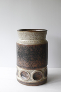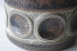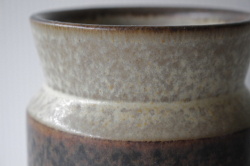 デンマーク、Michael Andersen & Son社の花瓶です。チョコレートカラーとサンドベージュの落ち着いた色合いに水玉模様がデザインされた花瓶で和の雰囲気漂う落ち着いた佇まいは、和室などにおいていただいても素敵でしょう。大き目の存在感のあるベースです。