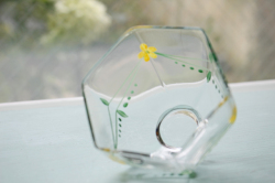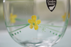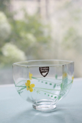 スウェーデンの老舗クリスタルメーカー、Orrefors社のヴィンテージのガラスボウルです。Arne Lindblomによる優しい花柄のハンドペイントと、Eva Englundのフォルムデザインがマッチした作品です。6角形でコロンとしたフォルムにお花がデザインされた可愛らしいお品です。アイスクリームやゼリーなどティータイムにいかがでしょうか。