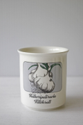 フィンランド、アラビア社のハーブ・スパイスポットです。側面にハーブのお花がデザインされています。ふたがありませんので、お花を生けたりミニ観葉の鉢カバーなどにしてもよいでしょう。ふたがないのでお買い得価格でご紹介しています。