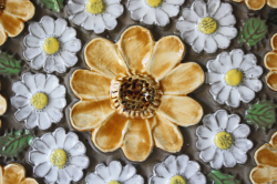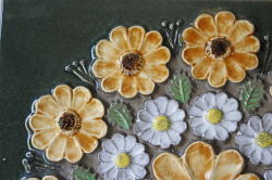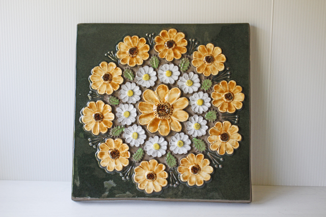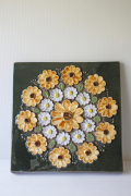 スウェーデンのjie gantofta社製の陶器の壁掛けです。Jieの陶板は可憐なお花がデザインされているものが多く、可愛らしいものからシックなものまでいろいろあります。こちらはオレンジとホワイトのフラワーリースのデザインで大変華やかです。コロンとした愛らしいモチーフはお部屋を明るく彩ってくれそうです。