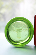スウェーデン、ボダ社製のErik Hoglund作、牛モチーフのアッシュトレイです。厚みのあるハンドメイド感があふれるフォルムにキョトンとした表情の牛のモチーフがデザインされ、オブジェとしても楽しめそうです。こちらはラウンドシェイプで鮮やかなグリーンが大変美しいです。一点一点ハンドメイドで仕上げられた作品は現地でもコレクターが多い人気の作品です。