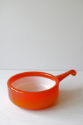 デンマークで見つけたHolmegaardのヴィンテージガラスの片手鍋です。外側のガラスと内側のミルクガラスの2重構造になったPaletシリーズは、デンマーク国内でも評価が高くたくさんのコレクターがいます。透明感のあるキャンディのような持ち手も愛らしく、実用として使っていただくだけでなくフルーツやデザートを盛り付けていただいても涼しげでよいでしょう。