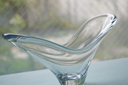 デンマーク、Holmegaard(ホルムゴー)のガラスのボウルです。こちらは、Per Lutkenの作品です。柔らかな曲線が美しいフォルムです。大きく開いたフォルムですので、オブジェとして、お花を並べたり、オアシスや剣山でフラワーアレンジメントを楽しんだり、キャンディなどを盛りつけてもよさそうです。