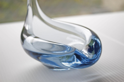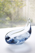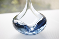 デンマーク、Holmegaard(ホルムゴー)のガラスのボウルです。こちらは、Per Lutkenの作品です。柔らかな曲線が美しいフォルムです。雨だれのしずくが落ちて跳ね返ってきた瞬間がそのままデザインされたかのように躍動感があり、とても美しいです。大きく開いたフォルムですので、オブジェとして、お花を並べたり、オアシスや剣山でフラワーアレンジメントを楽しんだり、キャンディなどを盛りつけてもよさそうです。