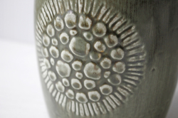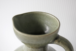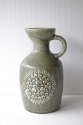 スウェーデン、Rorstrand(ロールストランド)でアートディレクターとして活躍したGunnar Nylund(グンナー・ニールンド)デザインの持ち手付き花瓶です。丸みを帯びた美しいフォルムに落ち着いたモスグリーンの配色が素敵です。中央にダリアのようなお花がデザインされており、オブジェとして飾っても存在感があるでしょう。