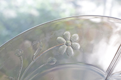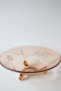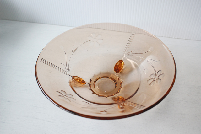 デンマークで見つけたヴィンテージのガラスの器です。こちらは脚付きのノスタルジックなデザインのボウルでスモーキーピンクが美しいです。お菓子やフルーツなど可愛らしく盛りつけて楽しんでくださいね。