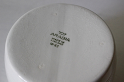 フィンランド、ARABIAの耳付きジャムポットです。こちらは絵付けされていないプレーンなタイプで丸いフォルムと耳付きがとても可愛らしいです。ぽってりした程よい大きさですので、鉢カバーとしてもおススメです。ほっこりとした観葉植物を入れて楽しんで下さい。