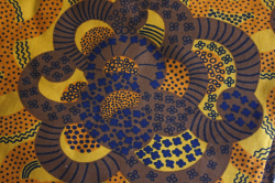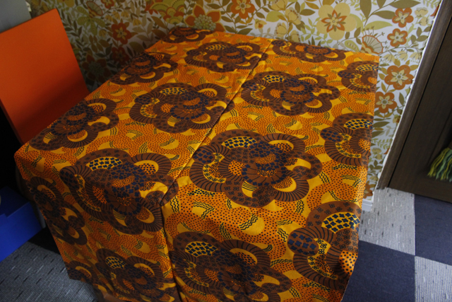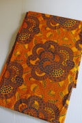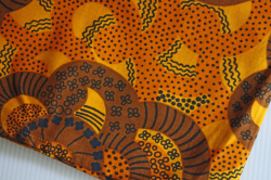 デンマークで見つけたヴィンテージファブリックです。こちらはオレンジ、ブラウンなどの暖色系で描かれたフラワーモチーフがとても大胆で、また非常に凝った印象です。食卓がぱっと明るく彩られ、また目隠しなどのカバーやリメイクしてクッションなどを作っても楽しめそうです。