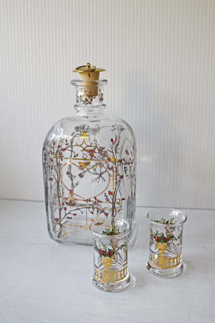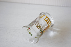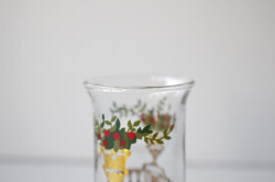 デンマークの王室御用達ブランド、Holmegaardのクリスマスショットグラスです。クリスマスボトルとショットグラスは、1981年から毎年発売されている人気のシリーズで、毎年違ったクリスマスの心温まる場面がデザインされています。デザイナーは、Michael Bang がフォルムを、 Jette Frolichがデコレートを担当しています。ボトルの側面には1~24までの数字が目盛として描かれ、12月1日から毎日一目盛ずつお酒を飲んでクリスマスを待つという子供たちのJULカレンダーの大人バージョンのようなものでしょうか。そのお酒を飲むときのグラスです。