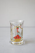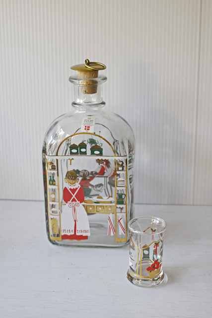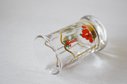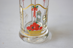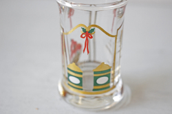 デンマークの王室御用達ブランド、Holmegaardのクリスマスショットグラスです。クリスマスボトルとショットグラスは、1981年から毎年発売されている人気のシリーズで、毎年違ったクリスマスの心温まる場面がデザインされています。デザイナーは、Michael Bang がフォルムを、 Jette Frolichがデコレートを担当しています。ボトルの側面には1~24までの数字が目盛として描かれ、12月1日から毎日一目盛ずつお酒を飲んでクリスマスを待つという子供たちのJULカレンダーの大人バージョンのようなものでしょうか。そのお酒を飲むときのグラスです。