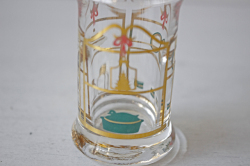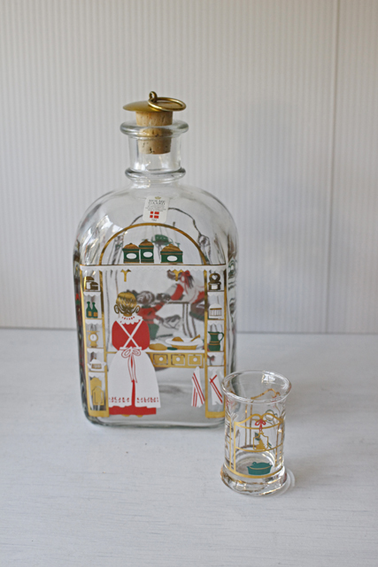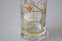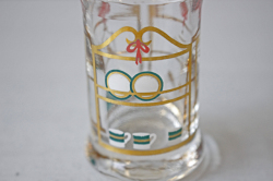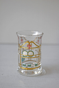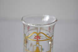 デンマークの王室御用達ブランド、Holmegaardのクリスマスショットグラスです。クリスマスボトルとショットグラスは、1981年から毎年発売されている人気のシリーズで、毎年違ったクリスマスの心温まる場面がデザインされています。デザイナーは、Michael Bang がフォルムを、 Jette Frolichがデコレートを担当しています。ボトルの側面には1~24までの数字が目盛として描かれ、12月1日から毎日一目盛ずつお酒を飲んでクリスマスを待つという子供たちのJULカレンダーの大人バージョンのようなものでしょうか。そのお酒を飲むときのグラスです。