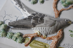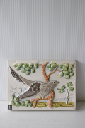 スウェーデンのjie gantofta社製の陶器の壁掛けです。こちらはスウェーデンのヴァームランドの景観に佇む鳥がモチーフになっています。優しい上品な表情の美しい鳥の様子が立体的にデザインされ、ほっこりとした印象でお勧めです。